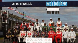 The front spoiler of the Ferrari Formula car driven by Fernando Alonso of Spain sports a Japanese flag and phrase in support of people affected by Japan's recent earthquake and tsunami, during the first practice session of the Australian F1 Grand Prix at the Albert Park circuit in Melbourne March 25...